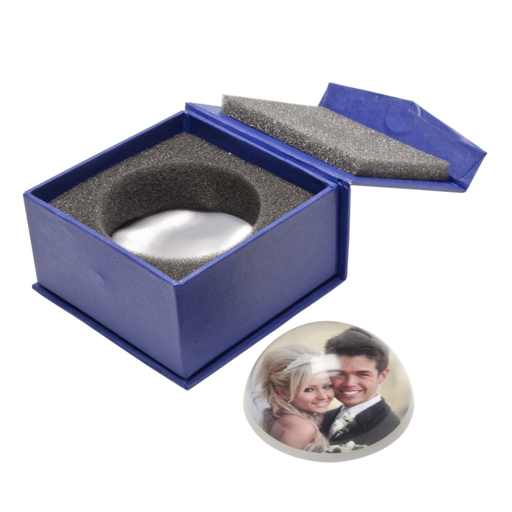 Hinweis: Ideal als Geschenk! Wie gewohnt liefern wir die hochwertige, aus Glas bestehende Halbkugel in einer blauen Geschenkbox. Nicht nur, dass sie schön aussieht – dank ihrer sehr weichen Polsterung bietet sie auch Schutz beim Transport. Ihren individualisierten Briefbeschwerer müssen Sie nur noch mit einer Schleife versehen, um ihn ideal zu verpacken.