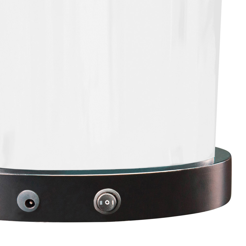 Der ovale LED Leuchtsockel misst 200 x 100 x 30 mm und hat eine Gesamthöhe von 235 mm, einschließlich der weißen Rückwand. Der Leuchtsockel läuft mit Batterien (3 x Mignon AA - nicht enthalten) und es ist optional ein Netzkabel erhältlich. Auf der Rückseite des Sockels befindet sich ein Schalter, mit dem Sie das LED-Licht manuell an- oder ausschalten und zwischen Batterie- und Netzbetrieb wechseln können. Die Unterseite des Sockels ist mit schwarzem Samt bezogen, um die Oberfläche Ihres Tisches oder Sideboards vor Kratzern zu schützen.