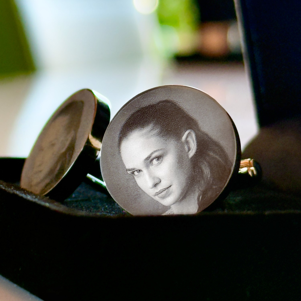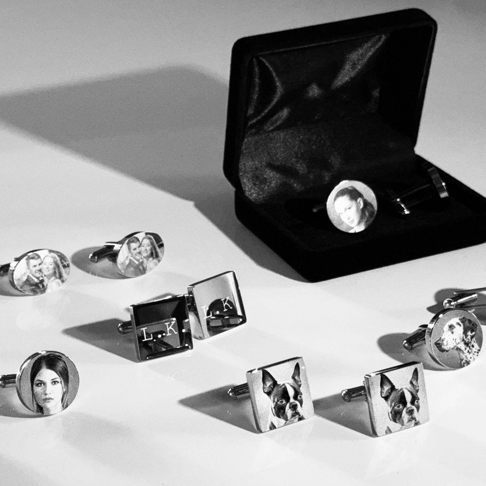 - Gravur: Fotogravur auf 1 Paar Manschettenknöpfe