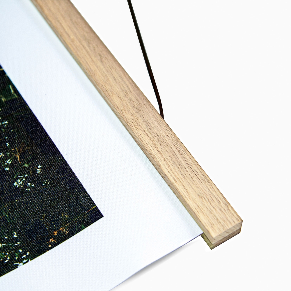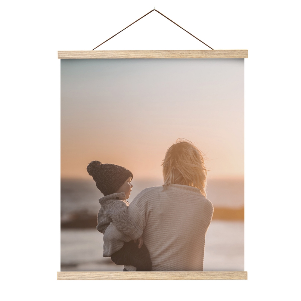 Dein Wunschfoto erhält durch die hochwertigen Holzleisten aus massiver Eiche oder Walnuss sowie den brillanten Farbdruck auf dem edlen, reißfesten Material mit Leinwandstruktur einen besonderen Look. Die Magnetleisten können unkompliziert und flexibel genutzt werden, wodurch ein Bildwechsel jederzeit möglich ist.